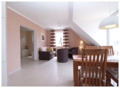 Über zwei Ebenen erstreckt sich die Wohnung und besitzt zwei Balkone. Weiterhin gibt es einen Kaminofen, Fußboden-heizung, Geschirrspülmaschine sowie einen PKW-Stellplatz. Das kinderfreundliche Ferienhaus liegt an einer Anliegerstraße mit sehr wenig Verkehr, direkt an einer neu angelegten Parkanlage.